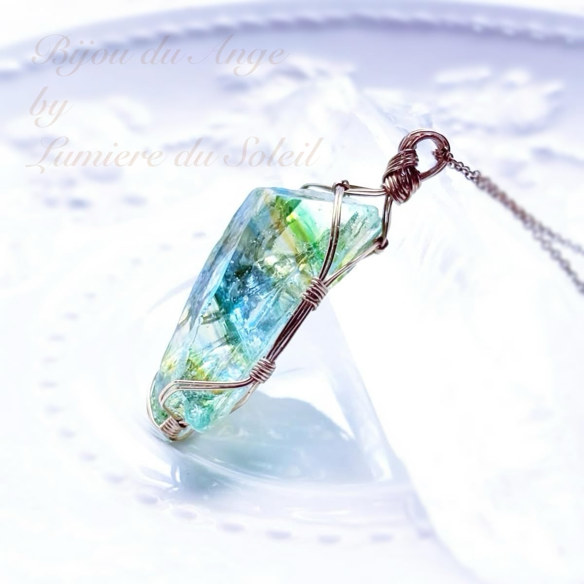 〜変性へのパワフルなサポート〜アンダラクリスタルのグリーン系マルチカラーペンダントトップ | 〜アンダラクリスタルと天然石のワイヤージュエリー〜Bijou du Ange by Lumiere du Soleil